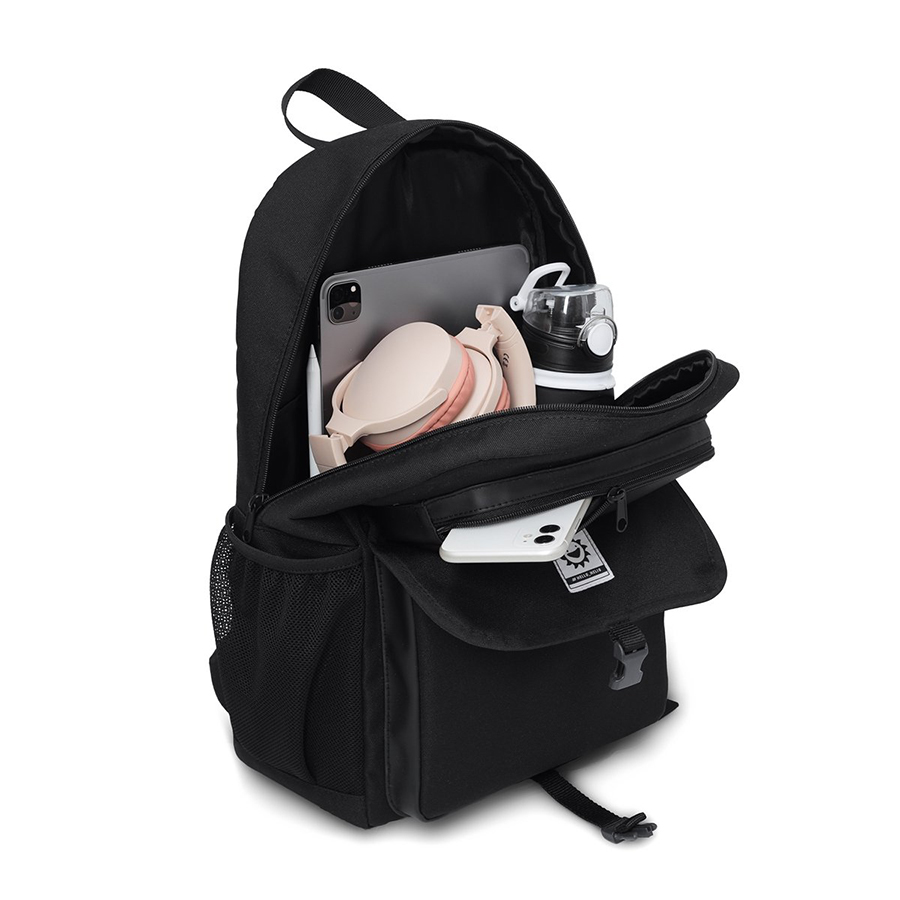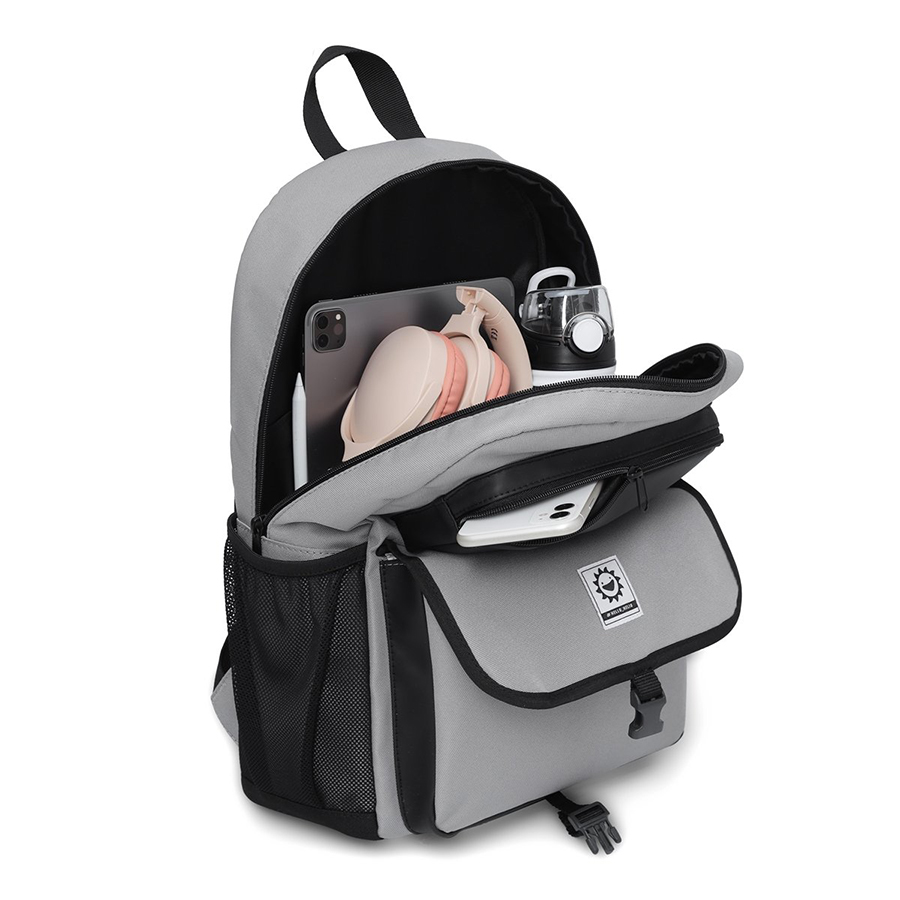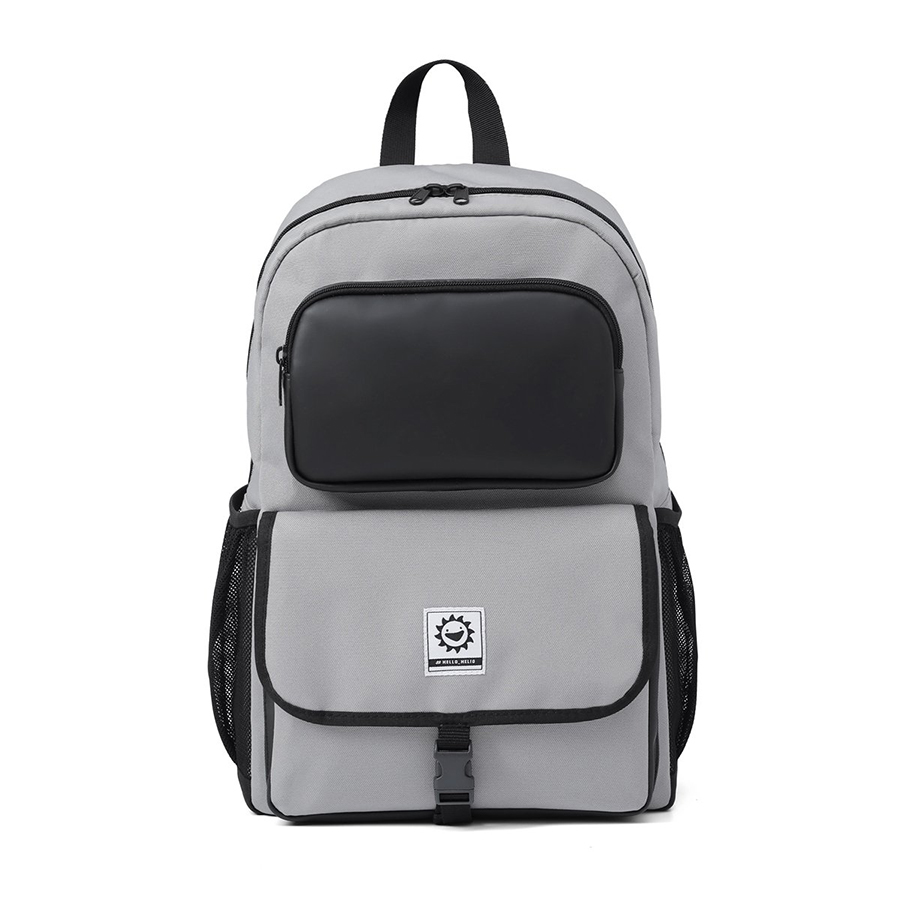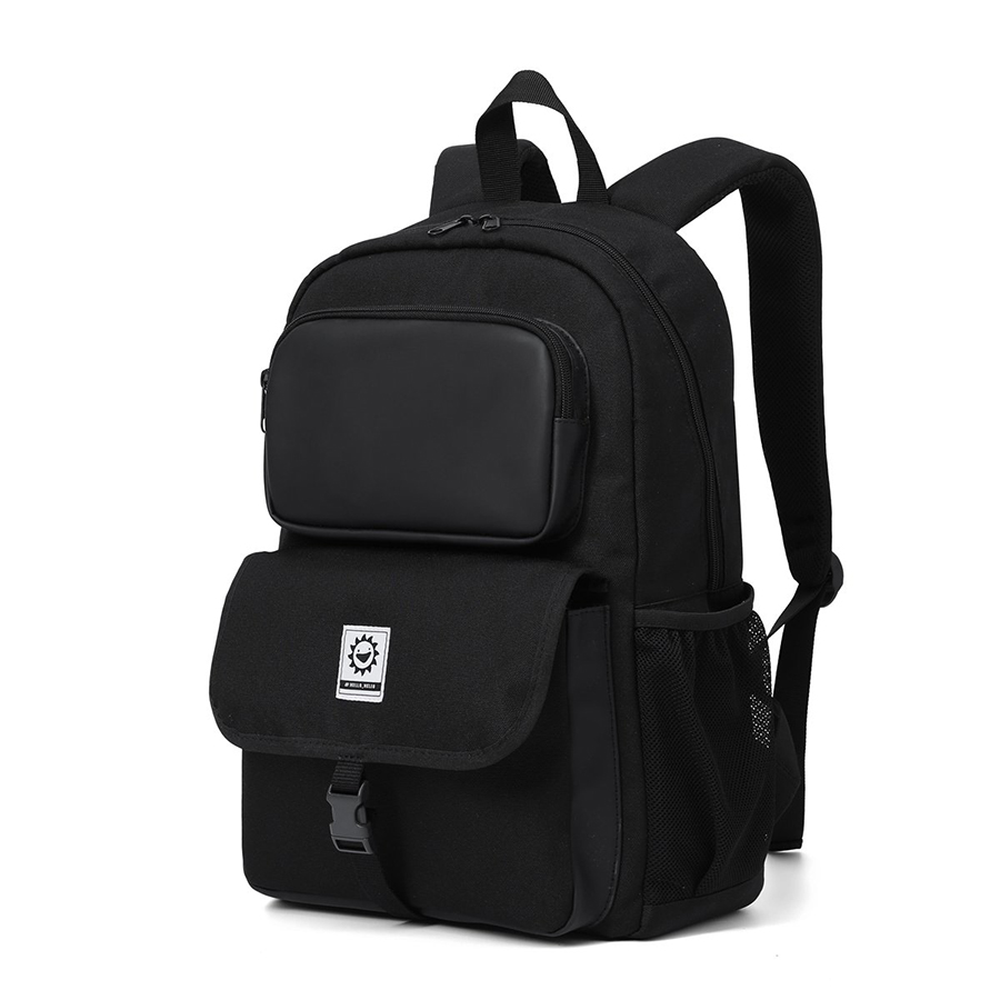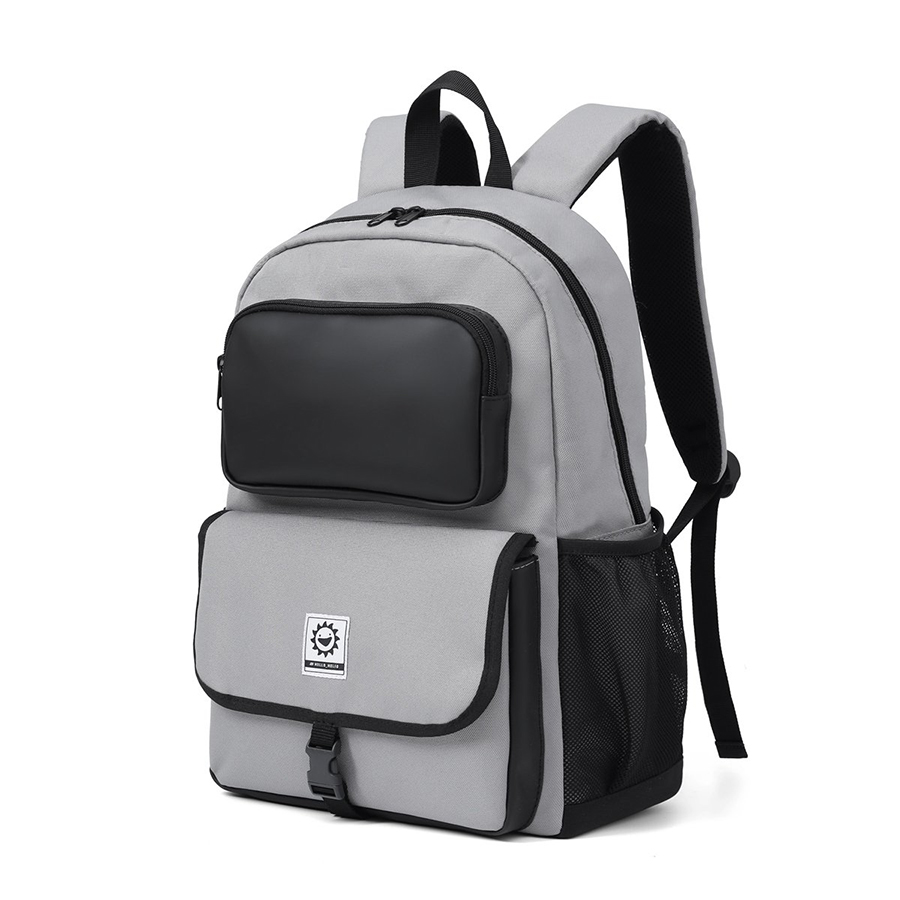 Ba lô sử dụng chất liệu vải polyester chống nước nhẹ, giúp bảo vệ đồ dùng khỏi ẩm ướt nhẹ hoặc mưa phùn. Ngăn chính rộng rãi vừa đủ cho laptop đến 15.6 inch, sách vở, áo khoác. Hai bên là túi lưới đựng bình nước tiện lợi, phù hợp cho các bạn cần di chuyển cả ngày.
