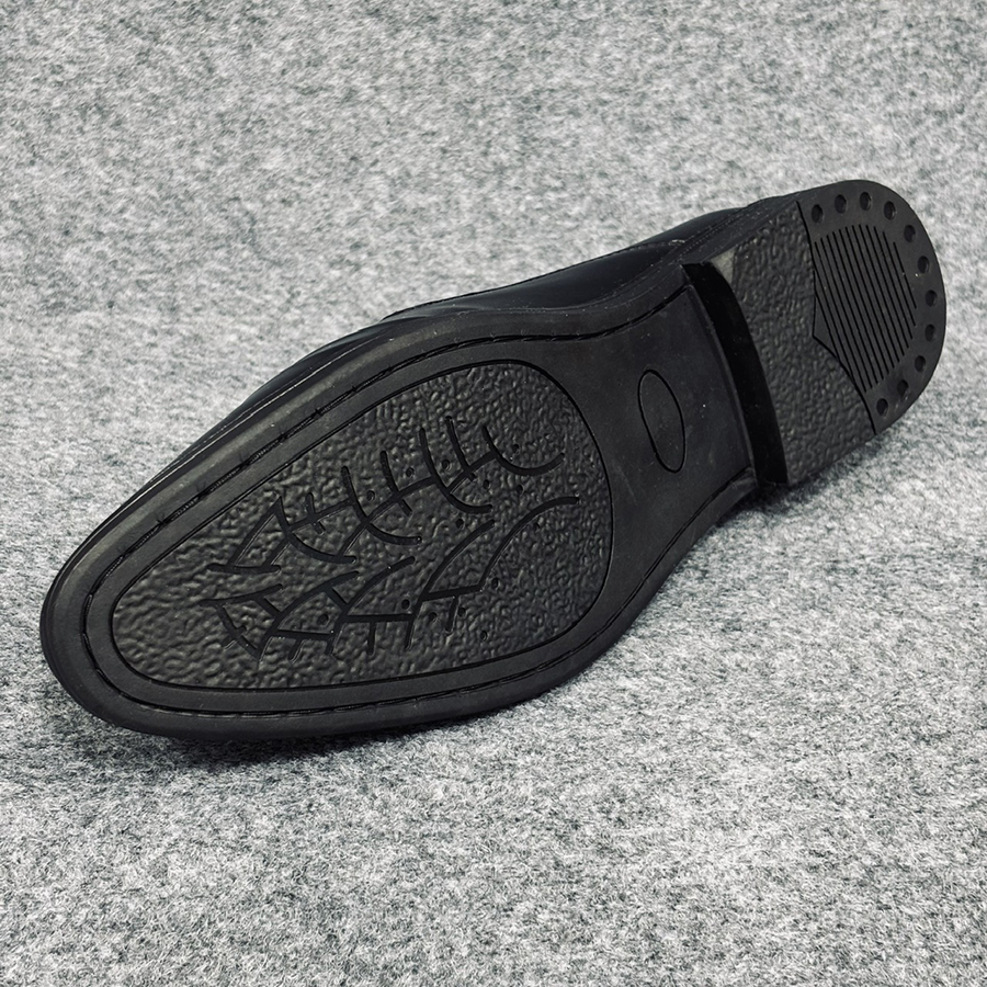 Điểm nổi bật của mẫu giày nằm ở chất liệu da tổng hợp bóng mịn, giúp tăng tính thẩm mỹ và dễ dàng vệ sinh. Form giày ôm gọn bàn chân, kết hợp với đường may thủ công sắc sảo tại mũi giày và thân trên, tạo nên tổng thể chỉnh chu, mạnh mẽ. Phần mũi giày bo tròn nhẹ giúp tạo cảm giác cân đối khi di chuyển và phù hợp với nhiều dáng chân khác nhau.