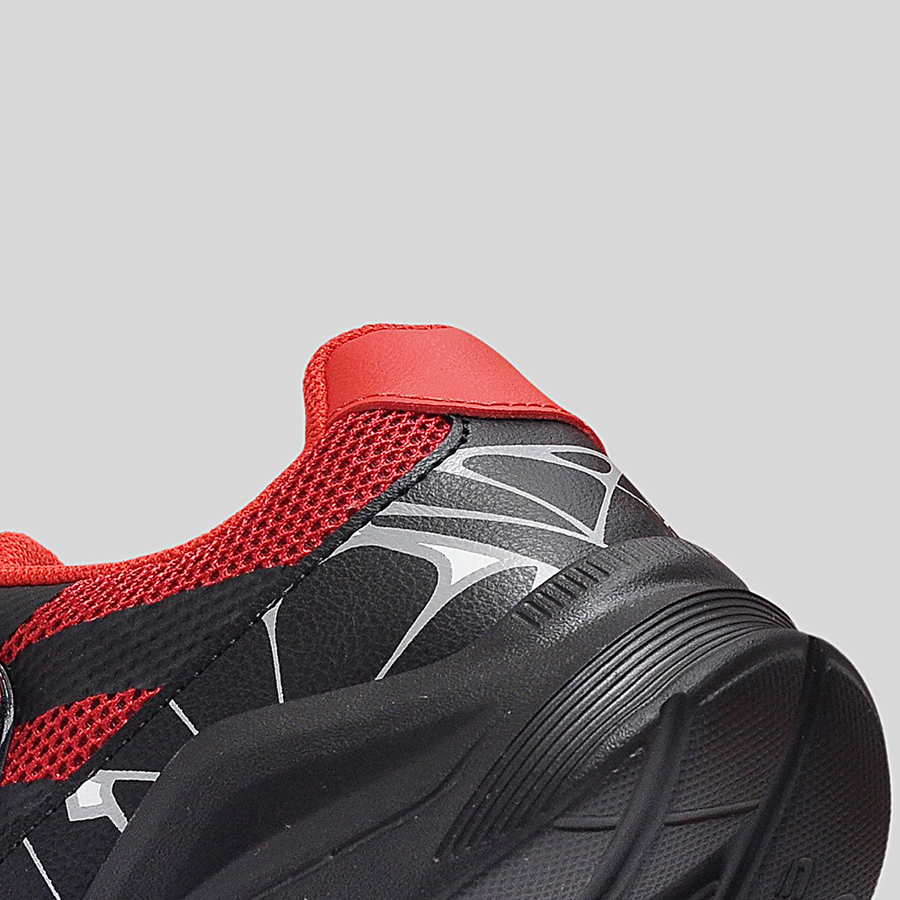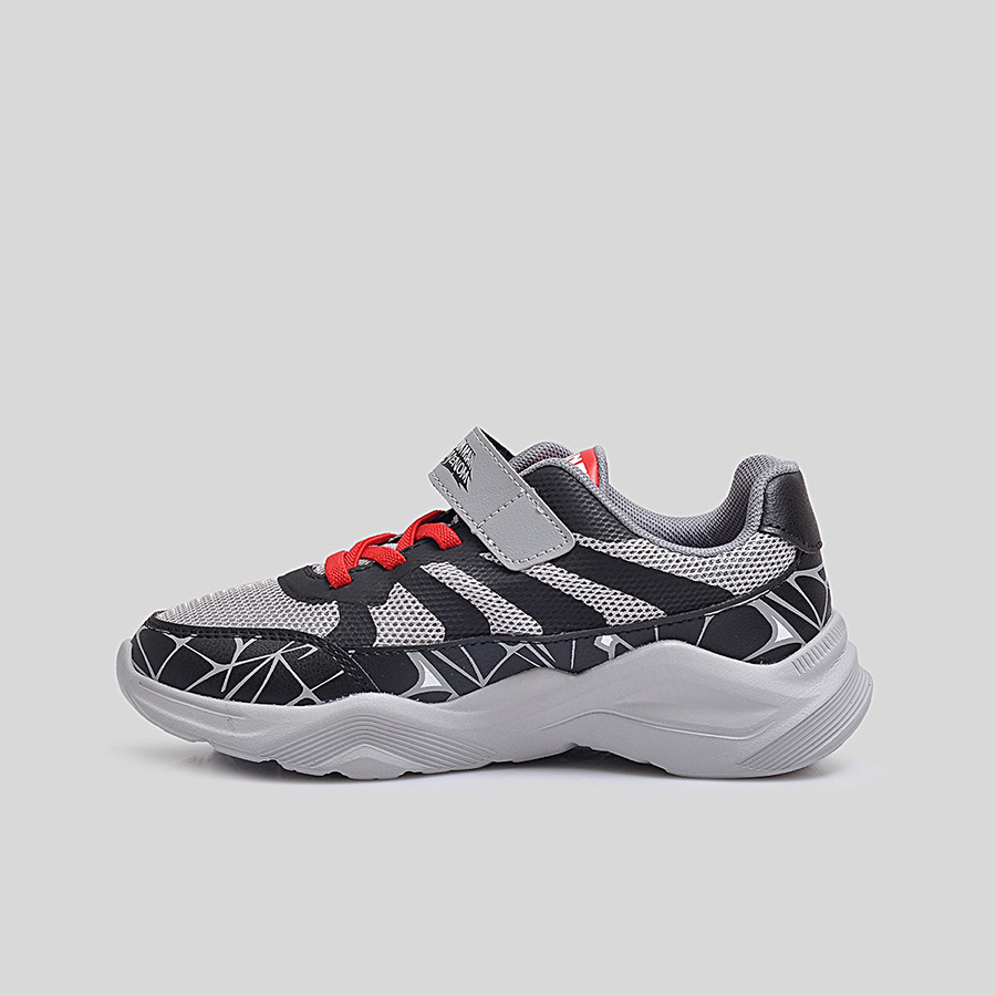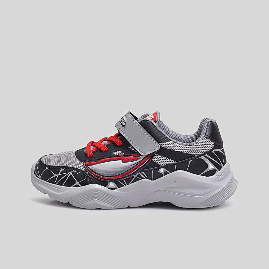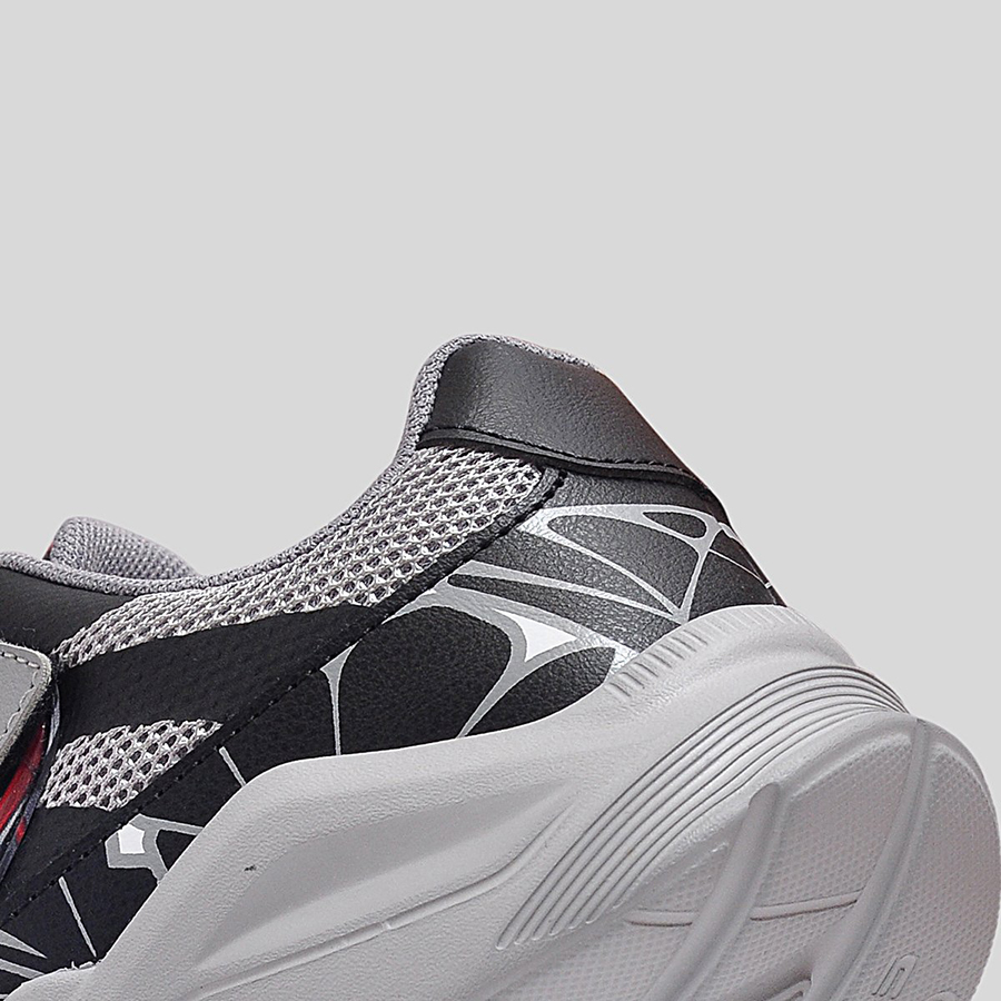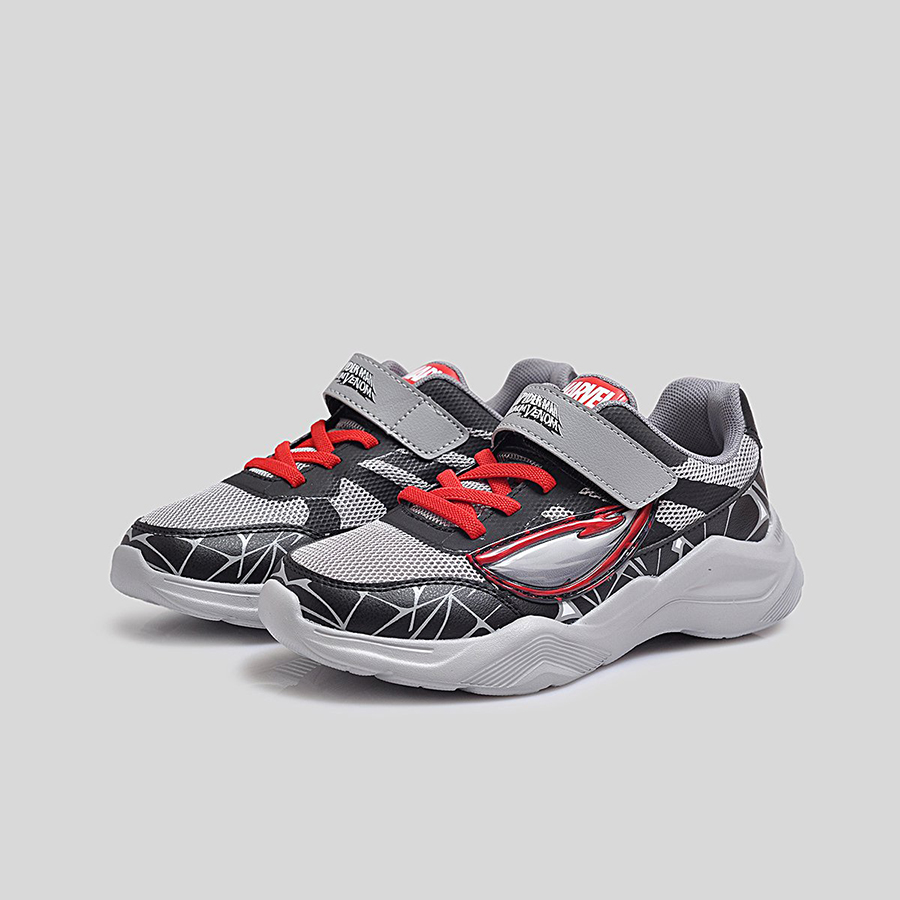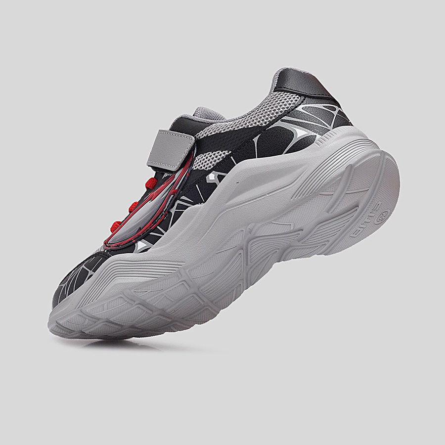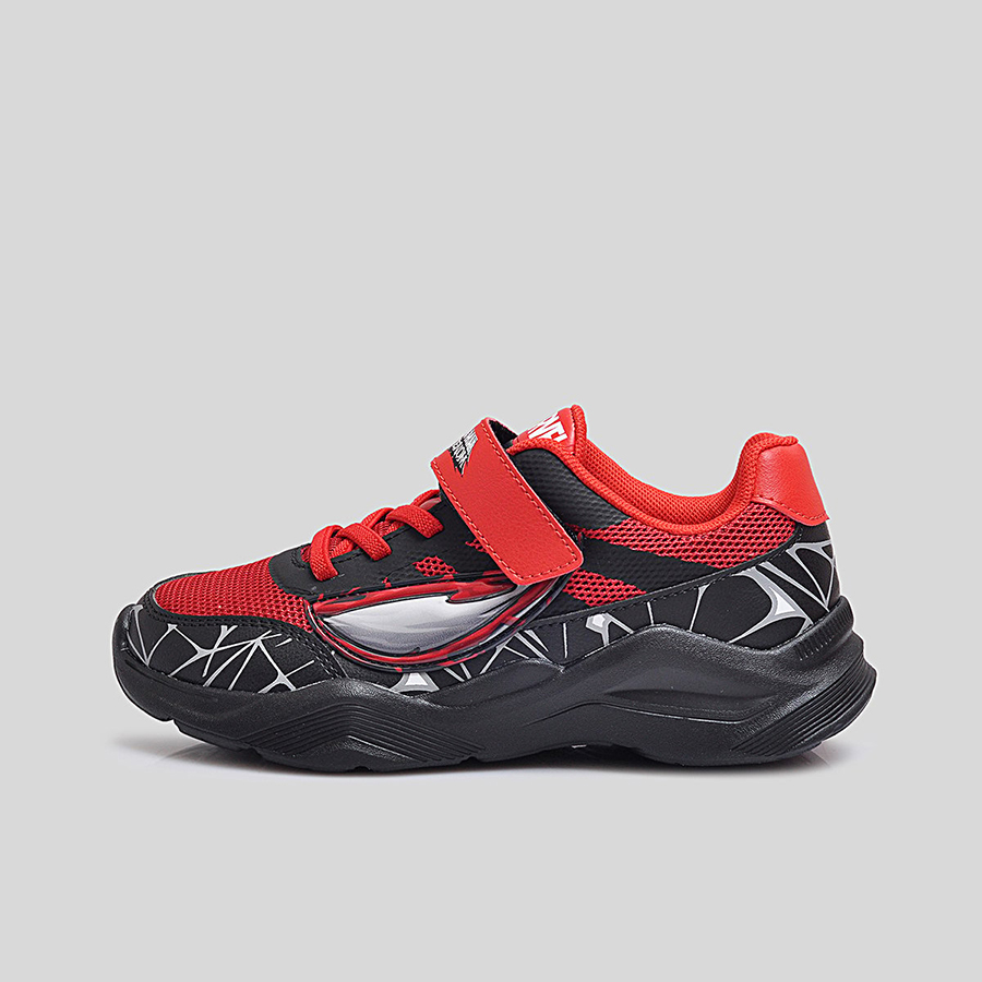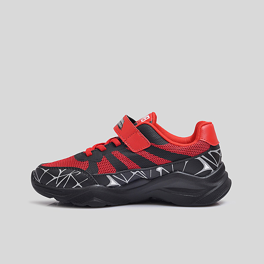 Điểm đặc trưng nổi bật chính là họa tiết mạng nhện 3D phủ quanh thân giày cùng logo Spider-Man Maximum Venom ở quai dán, giúp bé dễ dàng nhận diện và thêm phần hứng thú khi sử dụng. Thân giày bằng lưới thoáng khí kết hợp da tổng hợp bền bỉ, vừa tạo sự thoải mái vừa giữ phom dáng chắc chắn trong thời gian dài.
