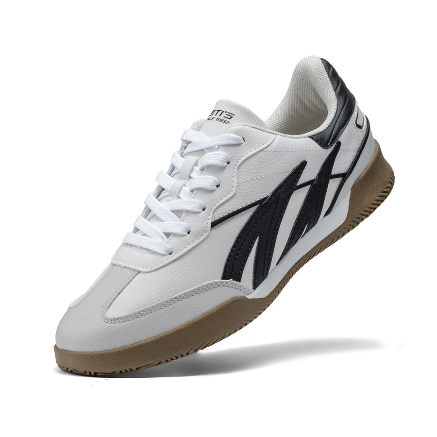 Thân giày làm từ da tổng hợp bền đẹp, bề mặt nhẹ bóng giúp hạn chế trầy xước và dễ lau chùi. Các đường cắt và may được thực hiện tinh tế, tạo nên hình dáng gọn, dễ ôm chân mà không gây cảm giác nặng nề. Dáng cổ thấp giúp thoải mái khi di chuyển, phù hợp với người dùng năng động.