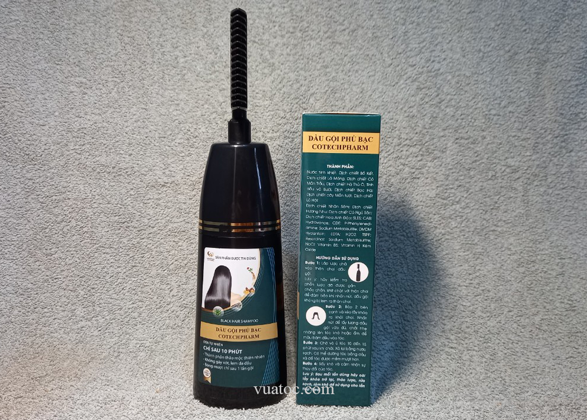 Cotechharm lược nhuộm tóc bạc thông minh được sản xuất bởi công ty cổ phần công nghệ dược phẩm Hà Nội. Là dầu gội dưỡng tóc kết hợp nhuộm đen tóc an toàn.