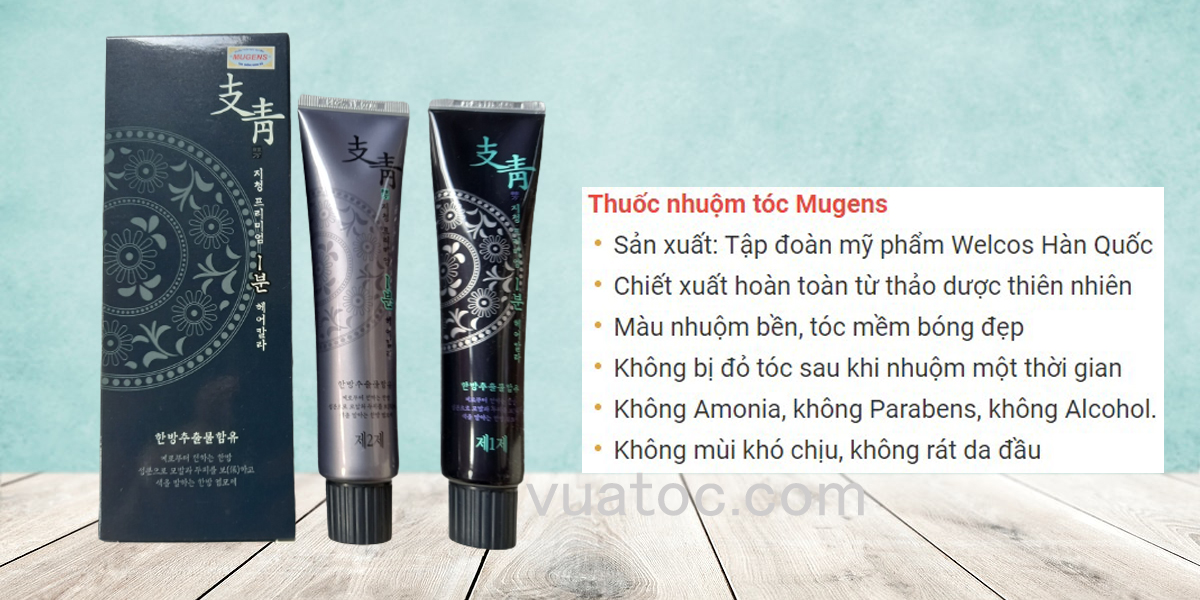 Thuốc nhuộm tóc Welcos Mugens được sản xuất 100% tại Hàn Quốc với các thành phần hoàn toàn từ thảo dược tự nhiên. Được chứng nhận rất an toàn cho người sử dụng.