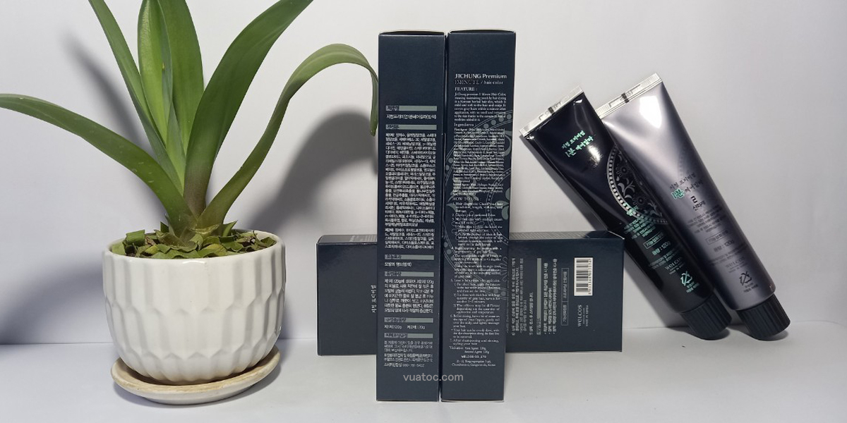 - Quý cách đóng gói: Màu nhuộm 60g+ kem nhuộm 60g + chổi+ găng tay+ áo nhuộm
