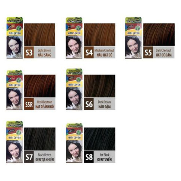 Thuốc nhuộm tóc Ami Seven có 7 màu phủ bạc.